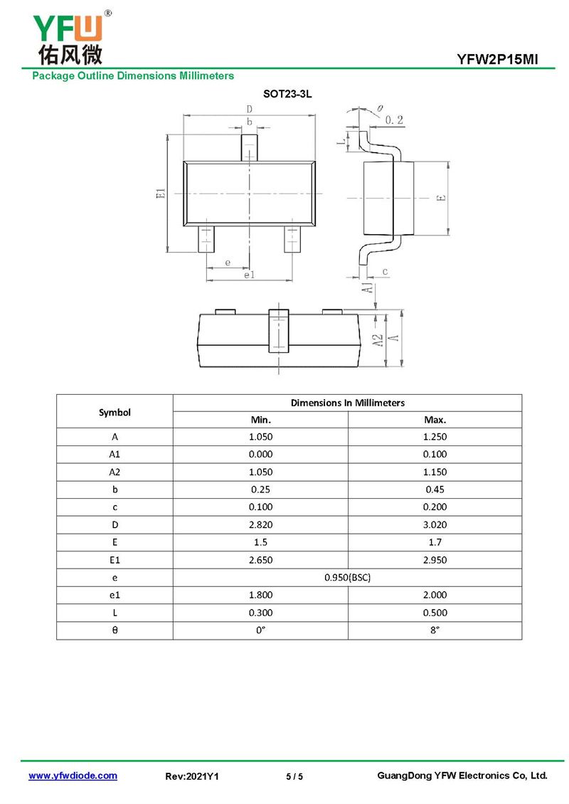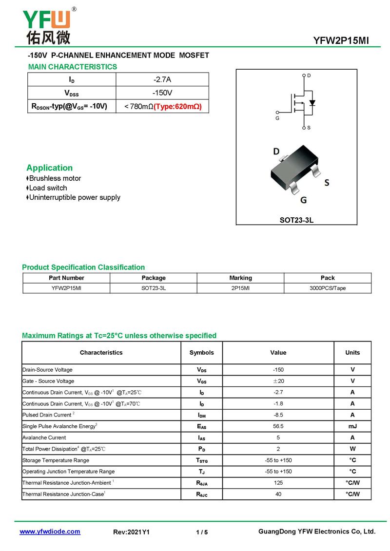 МОС полевая трубка, YFW2P15MI SOT-23-3L Правила_Цены_Правила PDF-Гуандун Юфэн ВэйИсточник производителя, YFW2P15MI SOT-23-3L_(YFWБлагослови ветер)Марка