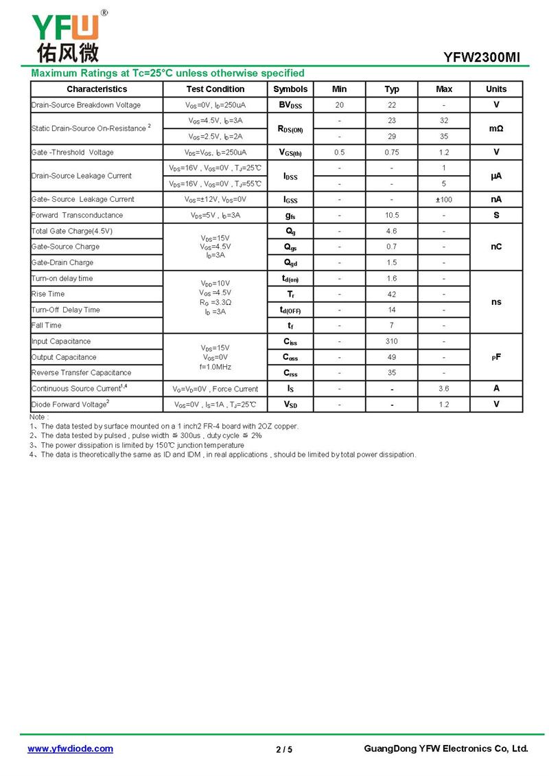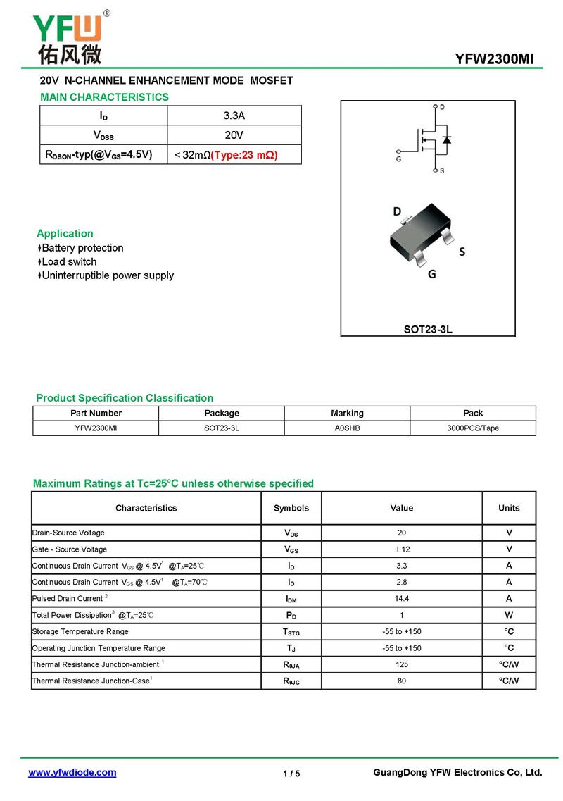 МОС полевая трубка, YFW2300MI SOT-23-3L Правила_Цены_Правила PDF-Гуандун Юфэн ВэйИсточник производителя, YFW2300MI SOT-23-3L_(YFWБлагослови ветер)Марка